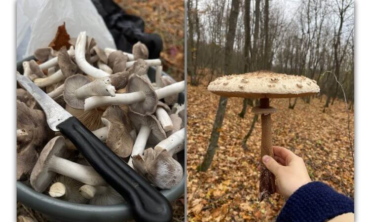 Подякувавши, ми пішли туди, куди вони нам вказали, за яр. Та тепер тільки щільною групою, прислухаючись до кожного звуку лісу. І справді, невдовзі побачили милі грибочки: міцні, товсті, з блакитною ніжкою – синьоніжки. Вони виглядали, як маленькі дива, заховані серед опалого листя. Деякі гриби траплялися перестиглі – темні, пухкі, з розпушеними краями, деякі були вже підморожені. Ми обережно перебирали кожен з них, немов гортали сторінки лісової книги: цей занадто старий, цей пошкоджений холодом, а ось цей – міцний, чистий, красивий, ніби щойно виринув із підстилки. Ліс щедрий, але мудрий: він дає гриби тим, хто вміє уважно дивитися. Живуть вони недовго – від кількох днів до двох тижнів, тому так легко зустріти й молоді кремезні велетні, й перестиглі гіганти, й підморожені крихітки.