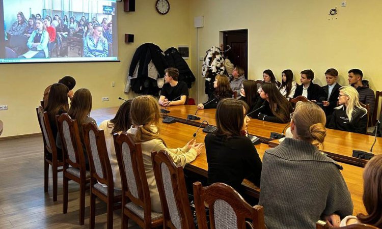 Спілкування проходило у змішаному форматі: учні столичної школи № 18 були присутні у залі, тоді як учні з різних міст республіки приєдналися дистанційно.